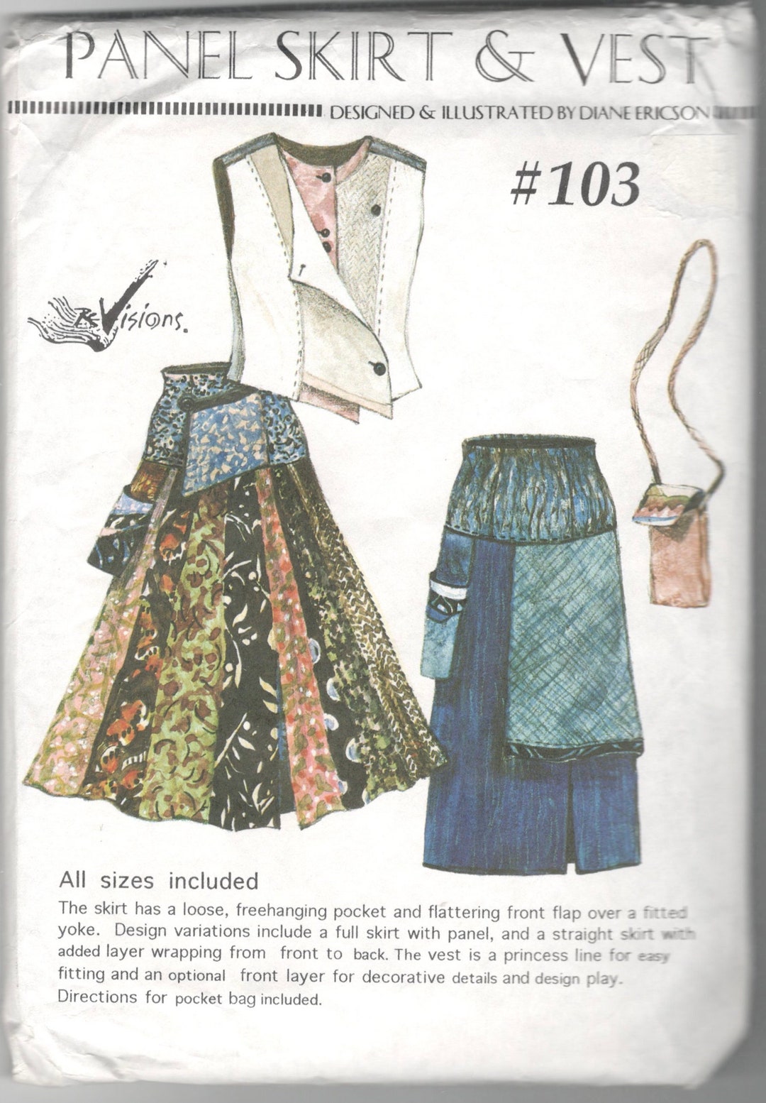 Revisions 103 Misses Panel Skirt Vest And Pocket Bag Pattern Etsy